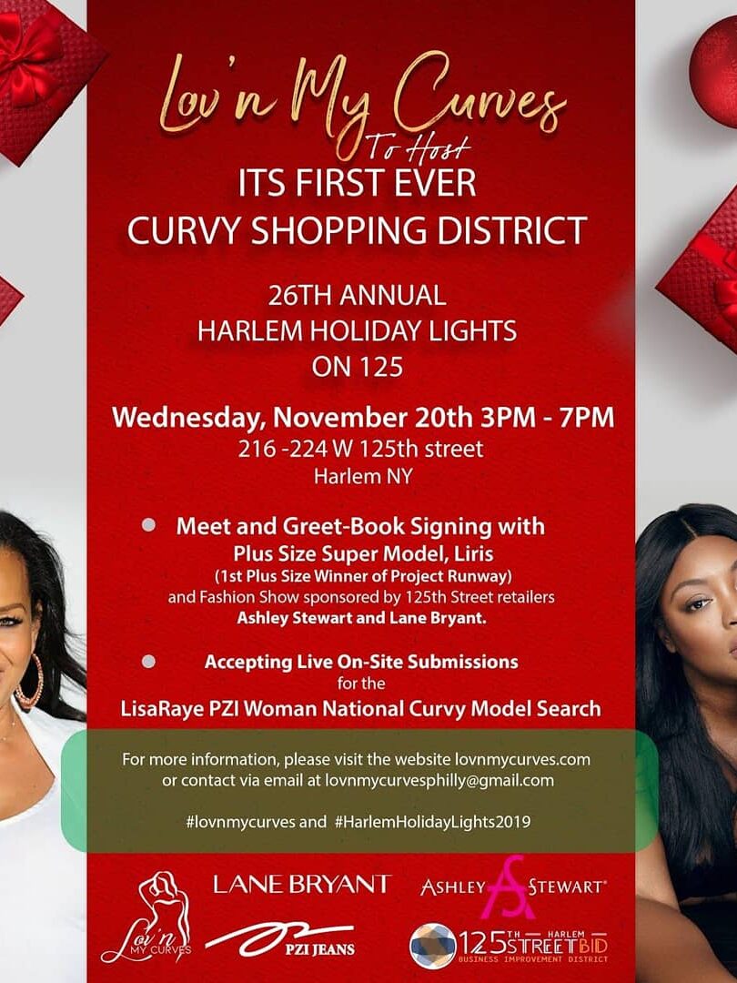 On November 20, 2019, Lov’n My Curves hosted a Curvy Shopping District in partnership with the 125th Street Business Improvement District at the 26th annual Harlem Holiday Lights 2019 celebration in New York. The highly anticipated holiday event draws several hundred people to 125th Street. As first time participants, Lov’n My Curves hosted the first-ever Curvy District. The Curvy district featured a series of events, including live fashion demonstrations featuring plus-size models, a book signing with a plus-size supermodel, and the winner of Project Runway, Liris Crosse. LMC also accepted submissions for the LisaRaye PZI Woman National Curvy Model Search at Ashley Stewart on 125th Street.